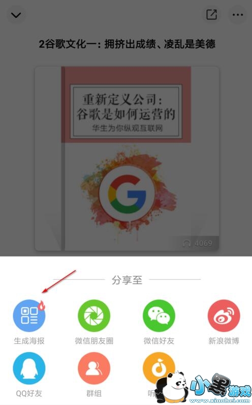 在分享界面除了我们常用的直接分享到微信好友或者微信圈,我们还可以点击“ 生成海报”进入编辑海报界面,在界面中我们可以修改文本告诉好友你对音频文件的感受,同时还可以在其中添加表情