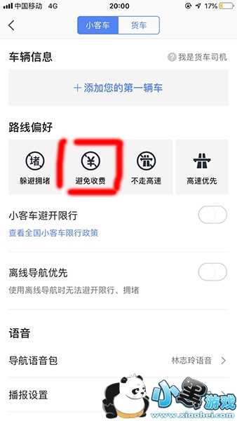 4、进入导航设置之后我们就可以看到路线偏好的栏目,点击避免收费就设置成功了。