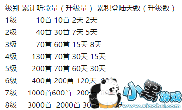 3.网易云升级每个阶段的条件,都会听固定的歌和登录时间。