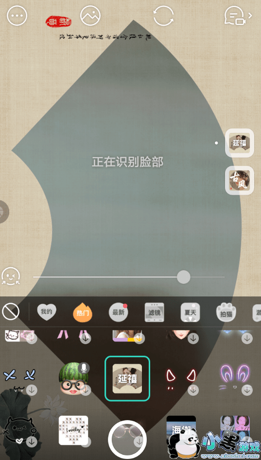这样一来,从热门分类下设置好延禧攻略(如下所示)的特效后,大家在点击拍摄视频或照片时,就会自动识别脸部信息,用特效让视频或照片变得更加有趣。