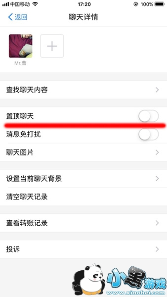 3、最后,就可以看到【聊天置顶】的选项,开启以后好友将会持续在我们的聊天首位。