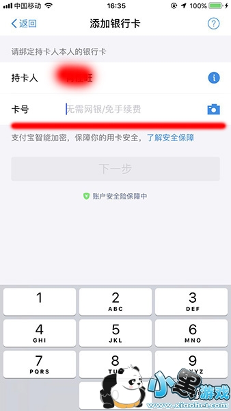 4、输入需要添加的银行卡卡号,然后跟着系统步骤来就可以了。