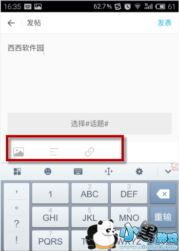 6、你如果想法图片或视频,在发帖界面选择图片或视频就可以。