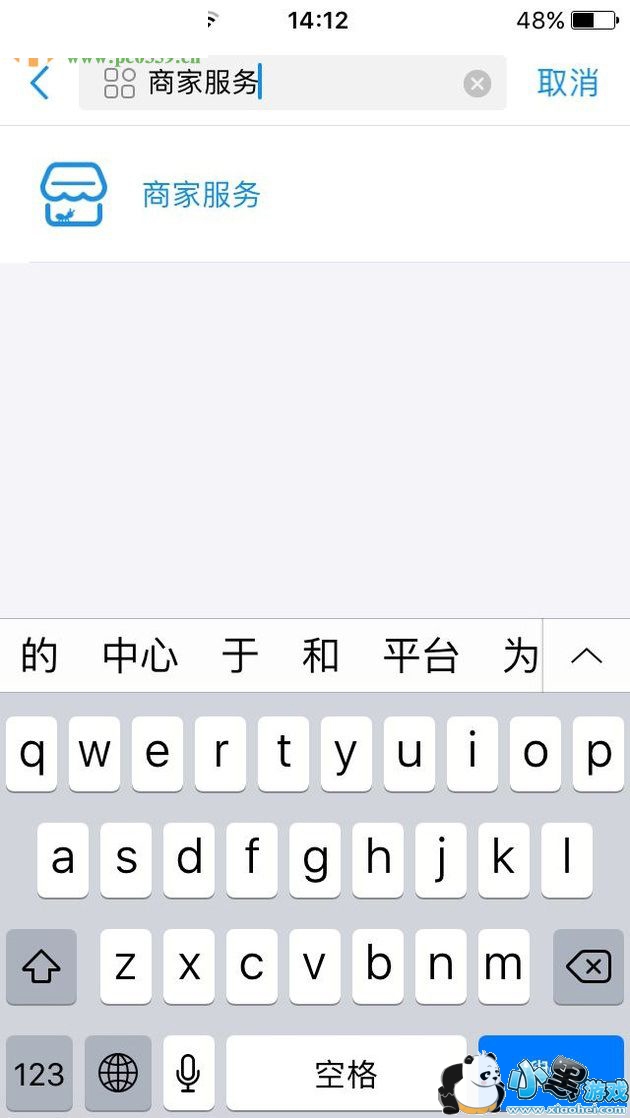 3、进入搜索界面之后输入:商家服务字样,然后我们就可以看见在下方已经出现了商家服务的图标!
