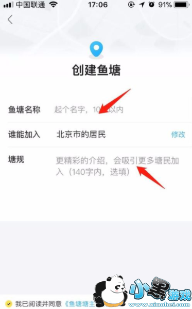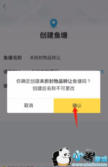 4.创建鱼塘需要填写的信息并不多,有鱼塘的名字和塘规就可以了,填写完成以后,点击“确认创建”就可以啦。