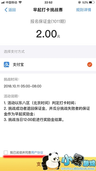 4、点击下方的【我已阅读并同意用户协议】,然后点击支付并报名