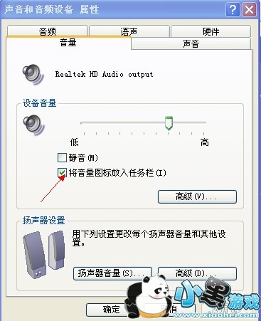 2、把√ 打上之后点确定桌面右下脚任务栏里就会有声音图标了,再检查下,音量是否调好和是否点了静音,休正之后电脑一般就有声音了。