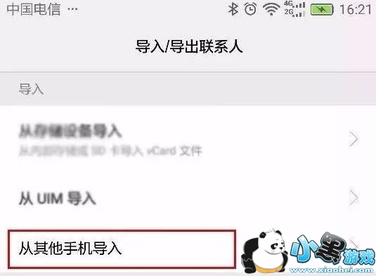 1、进入新手机联系人,点击【菜单】-【导入/导出】,点击【从其他手机导入】。