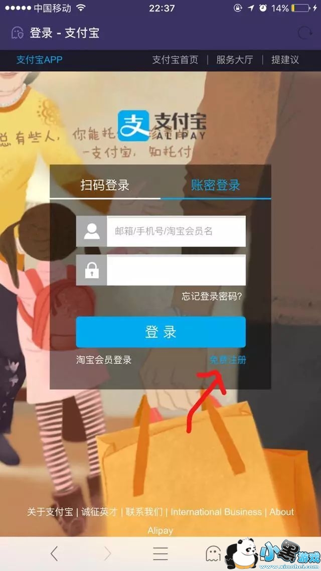 2、首先在浏览器搜索支付宝,点开以后就是下图的页面,点击免费注册。