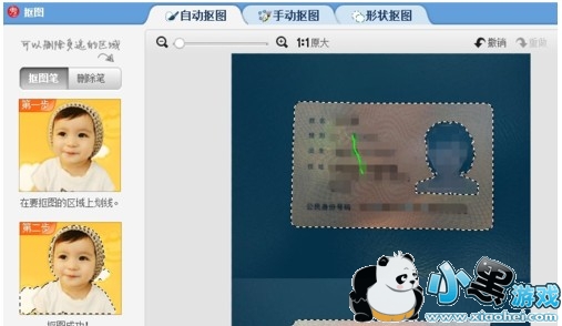 4、接着使用抠图笔选择自动头图将身份证抠出来。