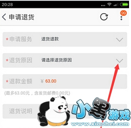 点下上图中箭头所指的V符号,在弹出的菜单中选择退货原因。