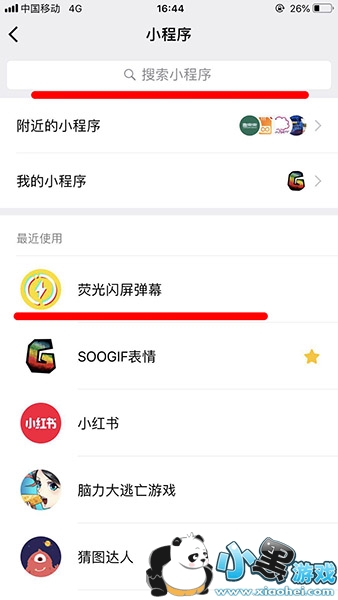 2、然后直接搜索“荧光闪屏弹幕”,点击进入