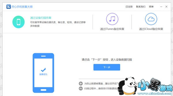 1、下载安装开心手机恢复大师,用于微信聊天记录恢复。