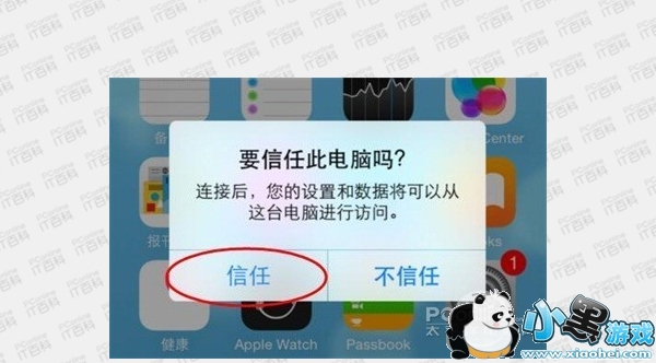 2、安装后打开并将手机和电脑连接。点击【信任】,表示你的手机允许电脑对其进行操作。