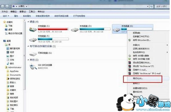 2、点击任意一个硬盘,右击鼠标,查看硬盘盘符的几个选项,其中就有个是格式化。