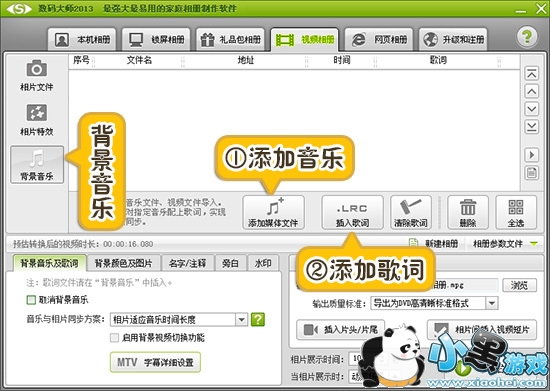 1、点击“添加媒体文件”按钮,一键导入喜欢的背景音乐。