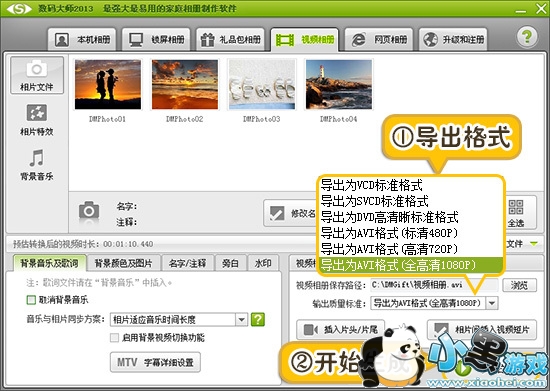 1、软件支持导出VCD/SVD/DVD和高清AVI视频等格式。