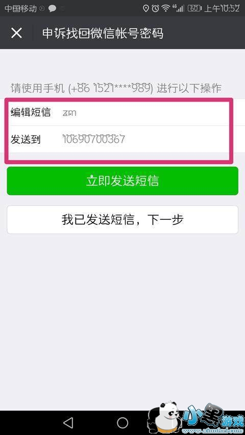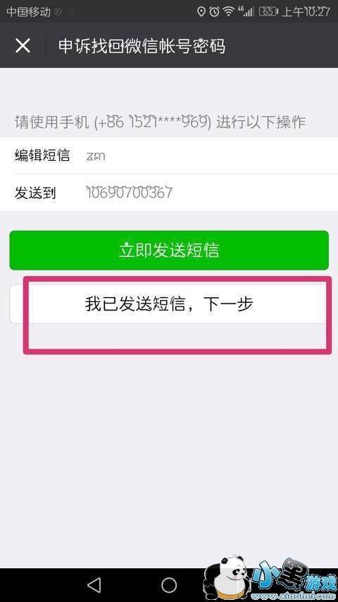 9、回到申诉界面,点击“我已发送短信,下一步”。