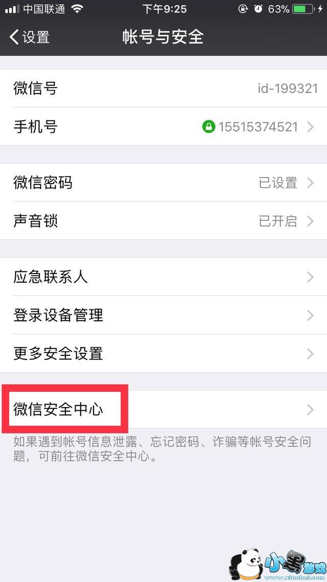3、进入账户安全之后,我们选择微信安全中心。