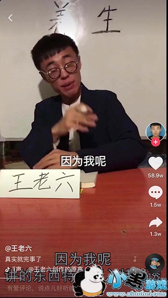 那么王老六的视频都是他自己剪辑而成的,也是利用了押韵的这种朗朗上口的方式吸引了很多的人,当然他的形象让人看起来就觉得特别的幽默,小西装、小眼睛、粗框眼镜,整体搭配起来就能给很多人带来喜感。