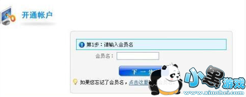 1.按照系统提示,点击“开通账户”,输入会员名。