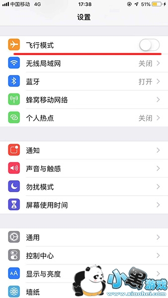 1、打开手机【设置】然后开启飞行模式30秒,然后再关掉,让手机重新搜索信号。