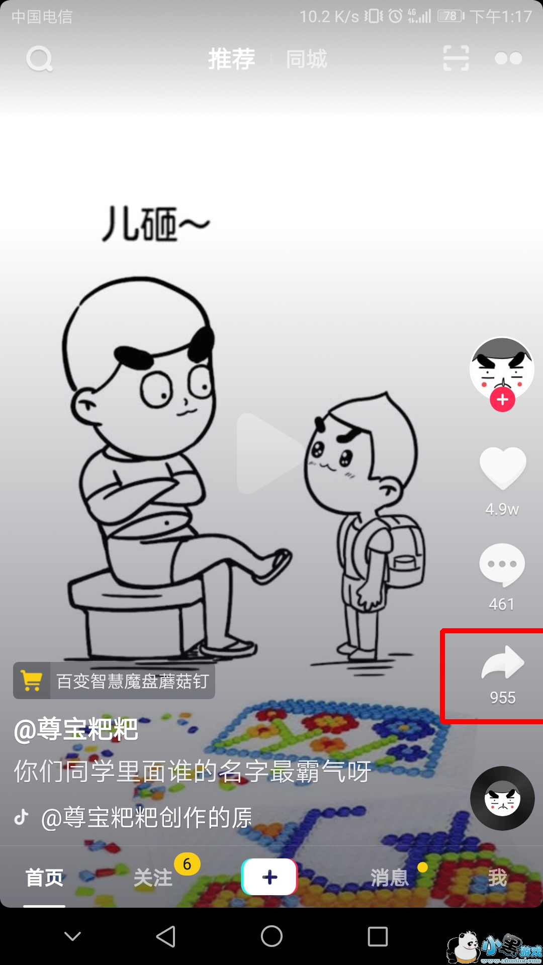 1、打开【抖音】软件,找到想要设置的视频,点击右侧【分享】