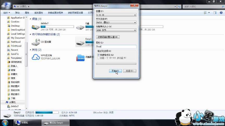 5、然后我们就可以点击开始的按钮,开始格式化。