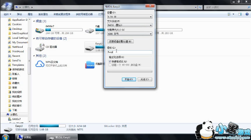 4、选择完文件系统后修改卷标名称这个是格式完成之后电脑显示的名称。