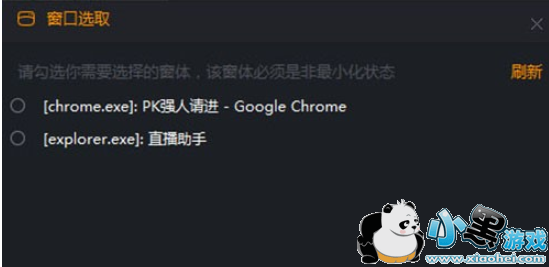 4、选择窗口,选中想要直播的窗口点击确认即可把窗口添加至直播窗口列表.