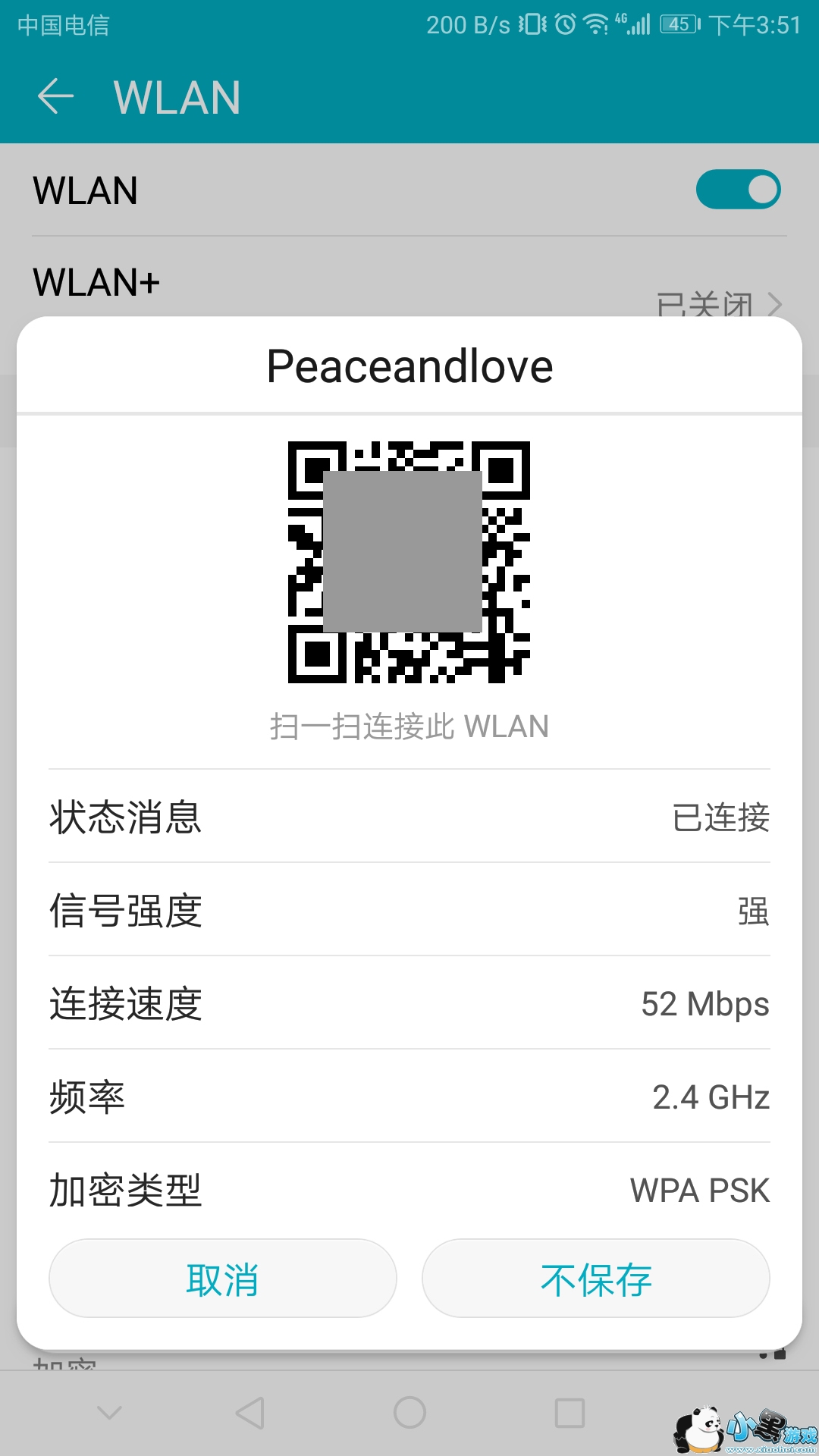 1、首先我们打开手机,连接上无线,然后我们点击已经连接的无线,会出现一个二维码,我们截图保存。