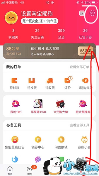 1、打开手机淘宝点击【我的淘宝】点击右上角的【设置】