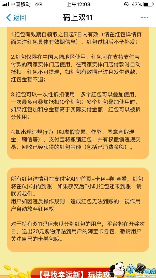 奖品:获得的红包不可以提现,使用红包发生退款时,优惠金额不退款的;红包可以在支付宝消费场景通用,可以叠加使用;