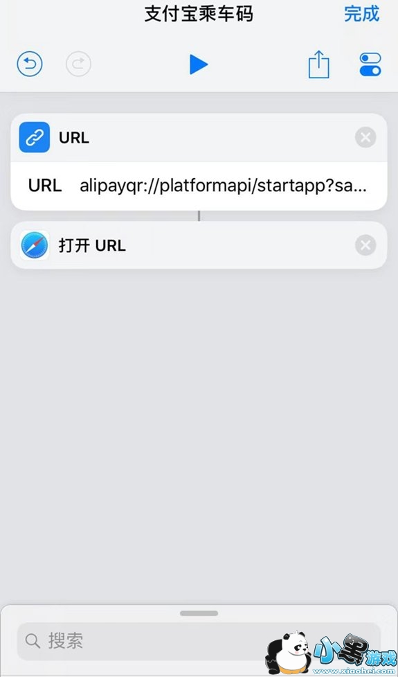 如果看过IT数码通小编之前制作的捷径教程,相信这点很容易想到,那就是添加 URL组件和打开URL组件,这两个2组件均可以在网页里面找到,添加URl组件之后,我们就需要输入支付宝乘车码URL路径即可,如下图所示。