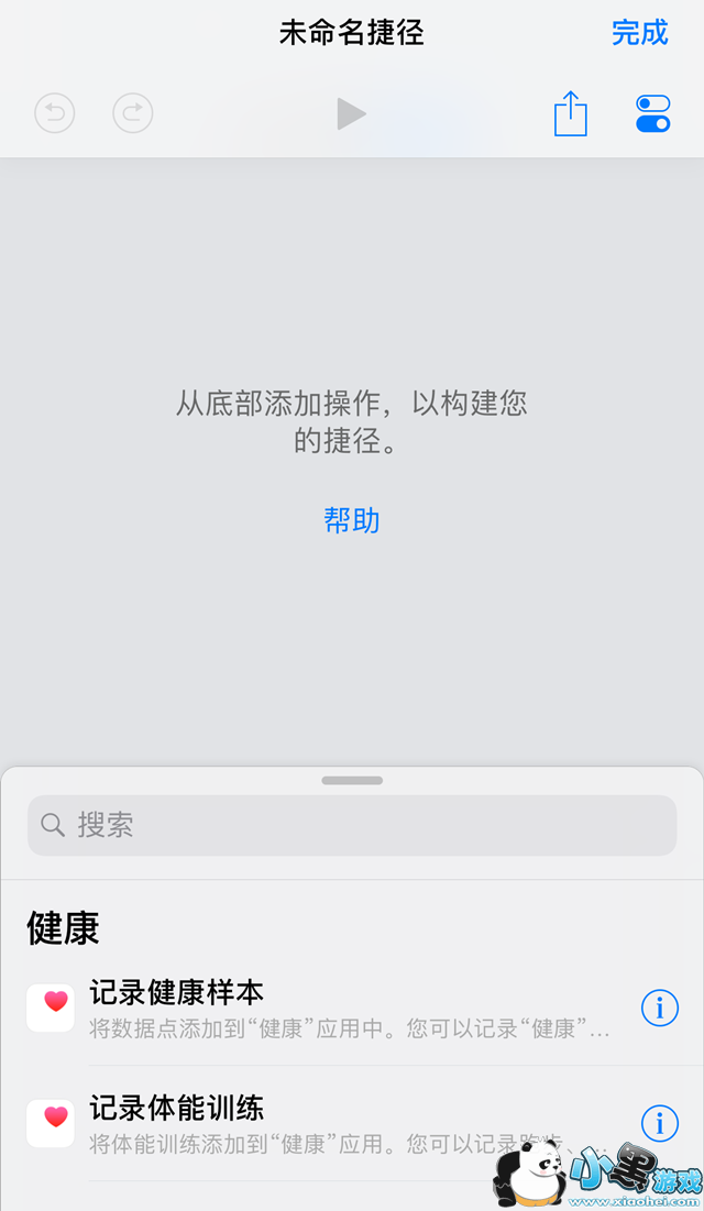 我们先需要创建一个捷径,点击捷径应用的 创建捷径,随后我们进入到了一个未命名捷径界面,这个界面就是我们创建规则的界面,如下图所示。