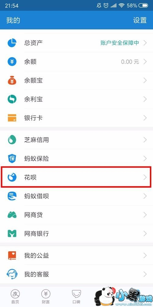 打开手机支付宝,在我的页面里面寻找花呗并打开。
