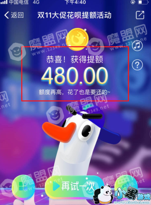 可以通过多次玩游戏来赢取额度,所得的额度为临时额度,在11月14日会到期。也就是双11期间可以使用的额度。