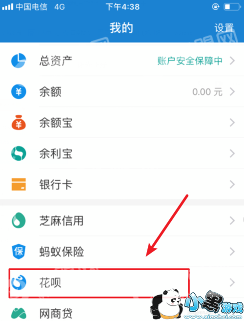 下滑个人中心界面,就可以看到花呗的选项,我们点击该选项进入。