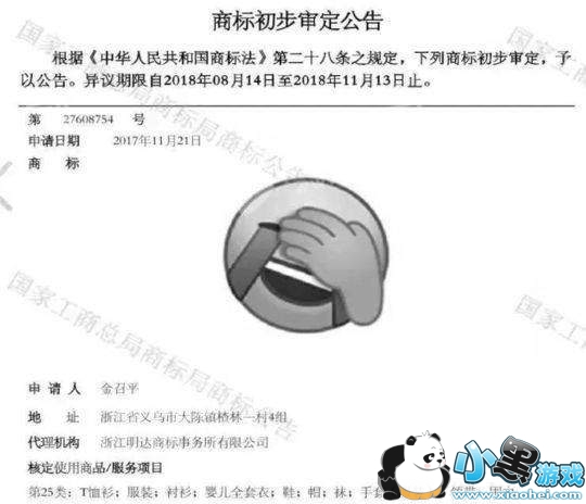 国家商标局在8月13日发布了该商标的审定公告,异议期限为2018年8月14日至11月13日。
