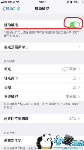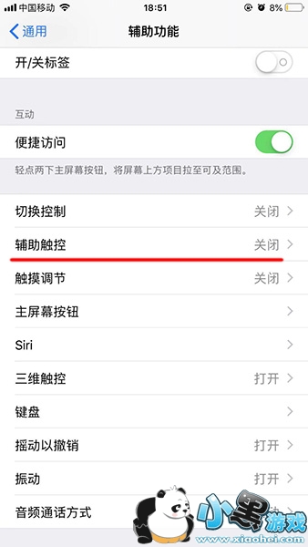 4、最后将【辅助触控】卡其就可以了,这样就可以用悬浮球来控制了。