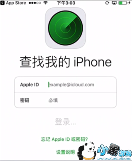 1、首先借助一台苹果手机,然后在App Store中搜索“查找我的iPhone”,下载完成之后打开,输入自己的Apple ID和密码