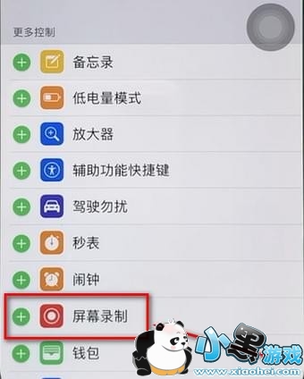5、最后划出控制菜单就能在这里出现录屏功能了。