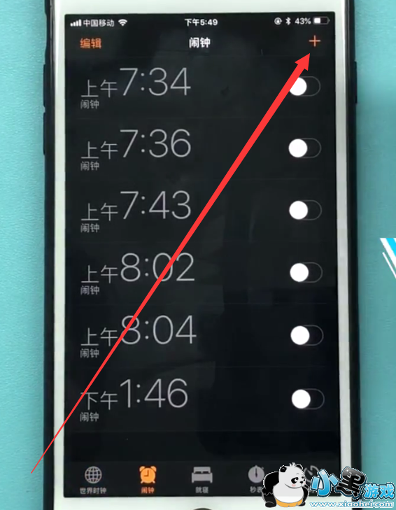 3、然后我们就可以点击右上方的【+】号的图标,来创建新的【闹钟】。