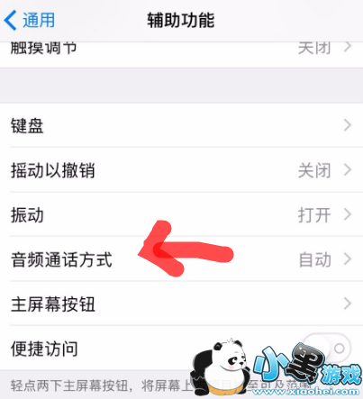 2、在【辅助功能】页面上点击【音频通话方式】