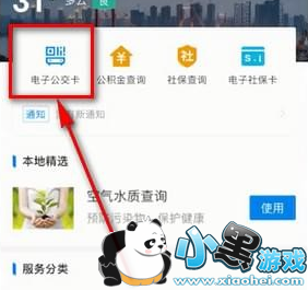 3、之后我们点击上方的【电子公交卡】