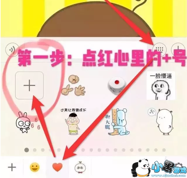 打开微信进入对话框,然后点击表情包,再点击红色爱心,点击【+号】