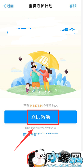 3.进入宝贝守护界面,点击立即激活,如下图所示