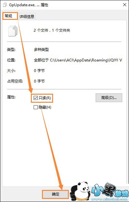 4、打开属性窗口后,勾选上“只读”,点击确定即可,这样爱奇艺播放器就不能更新了。