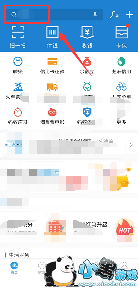 目前没有入口,我们点击支付宝首页上面的搜索框,如下图所示