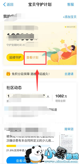 进入你的守护计划界面,点击查看计划,如下图所示